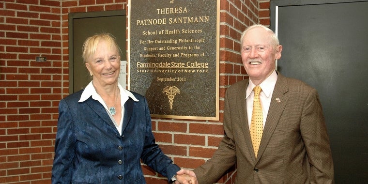 The college’s School of Health Science will now bear Theresa Patnode Santmann’s name for her outstanding philanthropic support and generosity to the students, faculty and programs of Farmingdale State College. Her gift is the largest in the 100-year history of Farmingdale State College.