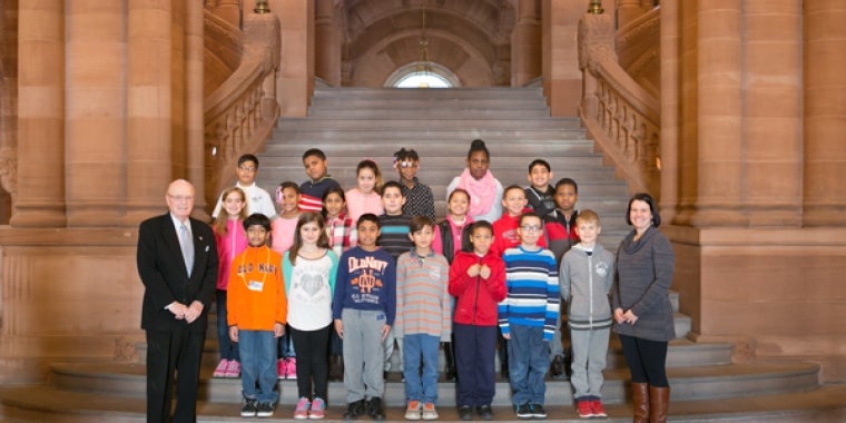 State Senator Hugh T. Farley (R, C, I - Schenectady) spoke at the March 6th rally for New York State Libraries. This week is the New York State Library Association's Advocacy Week. As Chairman of the Senate Select Committee on Libraries, Senator Farley conducted a Roundtable Discussion on March 5th discussing the need to support our local and public libraries. Also on March 5th, Senator Farley attended NYLA's dinner and was deeply honored to receive the organization's Ex Libris Award in recognition of his efforts on behalf of libraries. He will also be meeting with representatives from the Southern Adirondack Library System and the Mohawk Valley Library System on March 6th to discuss their legislative priorities. To view the Roundtable Discussion, visit http://www.nysenate.gov/committee/libraries For more information on NYLA, visit http://www.nyla.org/