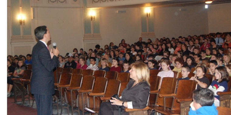 Senator Jack M. Martins presented the ‘How a Bill Becomes a Law’ program to an assembly at the Floral Park-Bellerose School. Senator Martins discussed the process of how a bill starts with an idea and then how it progresses until it makes it onto the Governor’s desk in Albany.