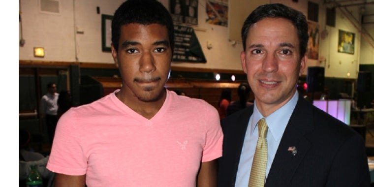 State Senator Jack Martins congratulated Sewanaka Central High School District Swimming Champion Aaron Buissereth on his sensational victories in county meets throughout this swimming season this past week. Buissereth qualified for the Nassau County Championships and has posted some outstanding wins capturing 1st place six times in the 200 freestyle and winning the Metros Silver Championship for the 100 meter breastroke. Aaron is a member of the class of 2014 at Elmont Memorial High School where he is a high achieving student and involved in volunteer activities. "It was a great honor talking to Aaron and hearing about his outstanding acheivement. He trains hard and is an outstanding student. There is absolutely no question that we will be hearing alot more about Aaron's acheivements in swimming and community involvement in the future. He makes Elmont and the Sewanhaka Central High School District proud," said Senator Martins.