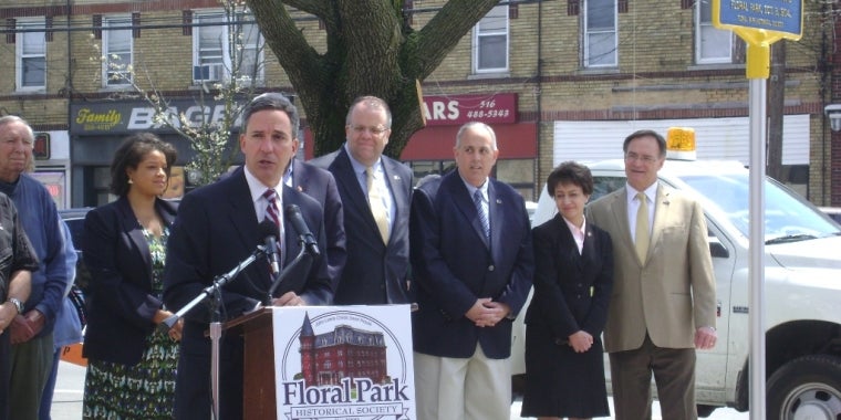 Senator Jack Martins and NY Knick Legend John Starks were presented by BET's 106 and Park television show's DJ Monumental with his signature "Hometown Hero Shirts" for their service and promoting positive outlets for young people. The shirts were designed DJ Monumental and presented to Senator Martins and Knick John Starks during the "Martins Classic 3-on-3" held at Dutch Broadway School. DJ Monumental is the in-house DJ for the widely successful and acclaimed BET television show "106 and Park" broadcast daily from NYC. Pictured with Senator Jack Martins are NY Knick legend John Starks, Marcel Hostin, Nachbi Lacossiere, Scott Cushing and DJ Monumental.