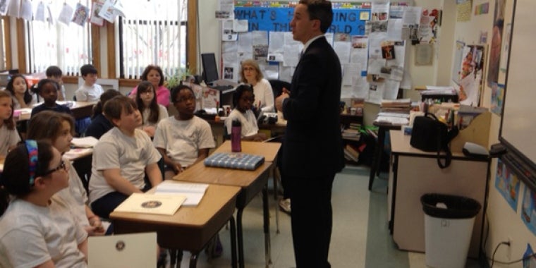 Senator Jack M. Martins has been visiting schools throughout the Seventh Senate District to present “How a Bill Becomes a Law,” a program his office started to engage elementary schools in the process of state government. Most recently, he visited the St. Mary's School in Manhasset to speak to fifth grade students about how a bill becomes a law.