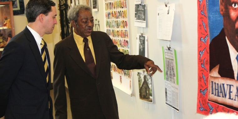 Senator Jack Martins was given a special tour of the Elmont Memorial Public Library’s “Black History Month” Art exhibit this past weekend where he viewed national artist Charles Winslow’s Black History Collection. Senator Martins toured the exhibit with Winslow whose showcase was part of the annual Black History Month Celebration. The internationally known “thread" artist developed his unique art style in the 1960’s. Mr. Winslow is a self taught artist and is a member of the Long Island Black Artist Association. “It was a real honor to be given this tour by Charles and to hear his story. He showed me each of his pieces and their unique historical backgrounds. I especially liked his thread pieces that have been displayed around the country. Artists like Charles Winslow culturally nourish our community and educate everyone on the arts and our nation's history,” said Senator Martins.