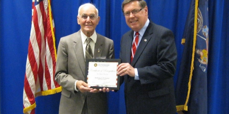 D’Arpino was recognized during a special ceremony at the Capitol along with other inductees to the New York State Senate Veterans Hall of Fame. A legislative resolution (J4797) honoring D’Arpino and the rest of the hall of fame class of 2012 was adopted unanimously by the state senate.