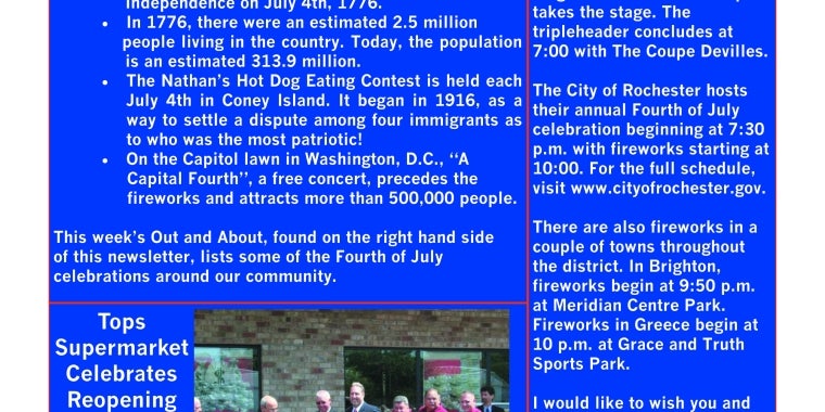 In this week's July 4th-themed Community Connection, facts about Independence Day, events around the community on Wednesday to celebrate Independence Day, and Tops Supermarket reopens in Hilton. Click on the link below to view this week's community connection in full screen.