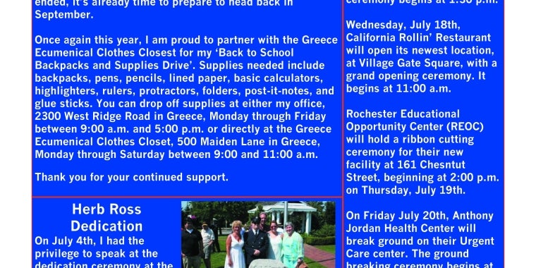 In this week's Community Connection, details regarding the Back to School Backpacks and Supplies Drive; upcoming events around the community; looking back at the Fourth of July Brighton Memorial Stone dedication. Click on the link below to read this week's Community Connection in full-screen.