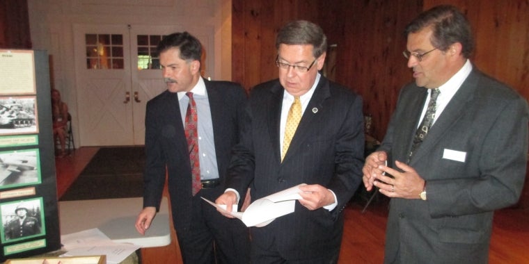 Photo attached, suggested caption: Senator Seward (center) reviews student projects at the National History Day in New York Competition. From left, Dr Paul S. D’Ambrosio, president and CEO of the New York State Historical Association, Senator James L. Seward, Garet D. Livermore, vice president for education of the New York State Historical Association and the Farmers’ Museum.