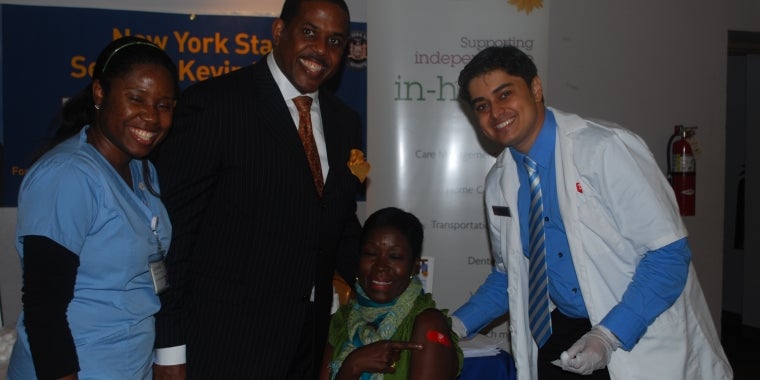 Brooklyn, NY- On Friday, November 1, 2013, Senator Kevin Parker and event sponsors Citi Home Health Care Services and WellCare, provided free influenza vaccinations for seniors and children in his district. As part of a broad-reaching effort to keep his constituents and Brooklyn residents healthy, Senator Parker, and event sponsors WellCare, Citi Health Home Care, Walgreens, administered more than 60 free flu shots, by a certified nurse practitioners from Walgreen’s Pharmacy, at Lenox Road Baptist Church.