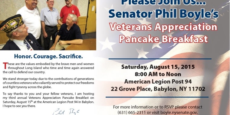 Go to NewsroomSenator Boyle's 3rd Annual Veterans Pancake Breakfast