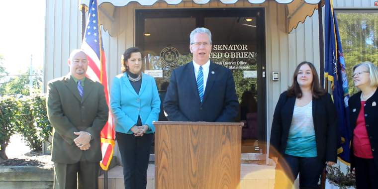 Sen. O’Brien represents the 55th district in the Senate, which is made up of the eastern half of Monroe County and the western half of Ontario County, including much of the city of Rochester.
