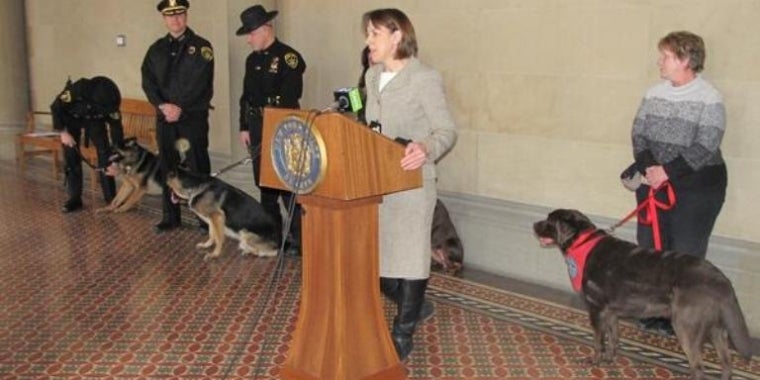 Senator Tkaczyk was joined by Albany County Sheriff Craig Apple who said, "The K9 units in the Sheriff's office are incredibly intelligent, loyal and brave. They, and their counterparts in the Military have a long history of heroic actions. They would literally take a bullet for their handlers, and deserve recognition for their courage and devotion.”