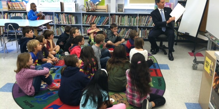 Senator Jack M. Martins (R-7th Senate District) recently served as a guest reader to fourth grade students at Floral Park-Bellerose Elementary School. Senator Martins read “The Retired Kid” by Jon Agee to the students as part of the school’s Parents as Reading Partners (PARP) week.