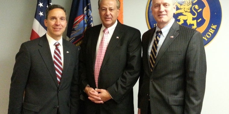 Senator Martins (left) is pictured at the meeting with Roslyn Estates Mayor Jeffrey Schwartzberg (center) and Nassau County Legislator Rich Nicolello (right).