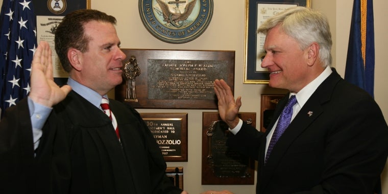 Seneca Falls- Ontario County Court Judge Craig Doran who also serves as Administrative Judge for the Seventh Judicial District and Acting Supreme Court Justice, recently administered the formal oath of office to New York State Senator Mike Nozzolio. Judge Doran is well known for his outstanding community service and fairness in interpreting the law.