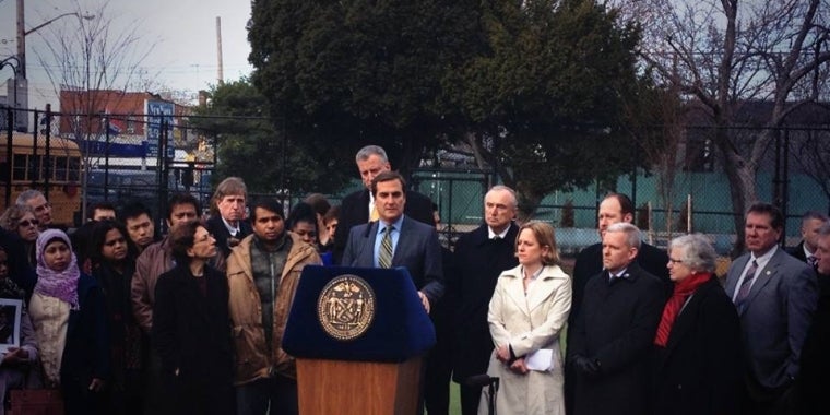At PS 152, surrounded by elected leaders, community activists, and the families of deadly car crash victims, Mayor Bill de Blasio laid out a plan to make our streets safer. In support of Mayor de Blasio’s efforts to reduce the number of traffic fatalities in our city to zero, Senator Michael Gianaris called for the swift passage of his legislation that would make it a felony for drivers who drive with suspended licenses and kill or seriously injure someone in the process.