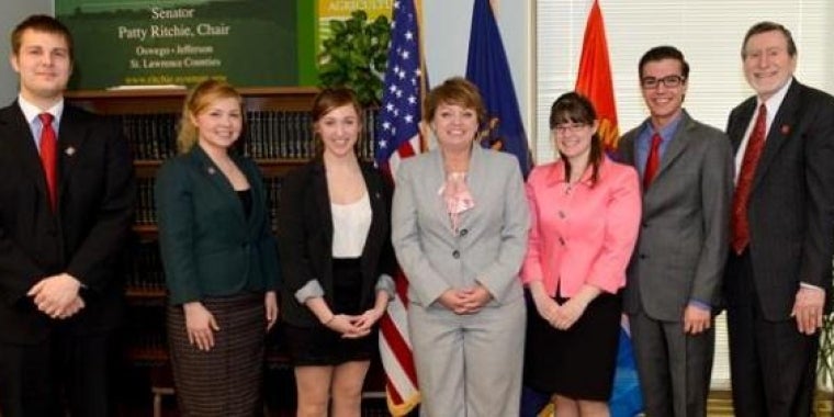 State Senator Patty Ritchie met with SUNY Potsdam Interim President Dr. Dennis Hefner as well as students and staff from the college recently in Albany.