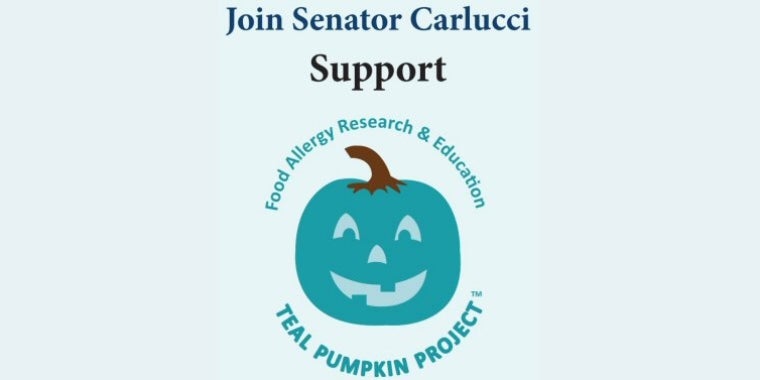 Senator David Carlucci encourages you to take part in the Teal Pumpkin Project, a nationwide initiative that draws attention to food allergies and encourages residents to leave a painted teal pumpkin outside their home to signify that "non-food" items are available for Trick or Treaters this Halloween.