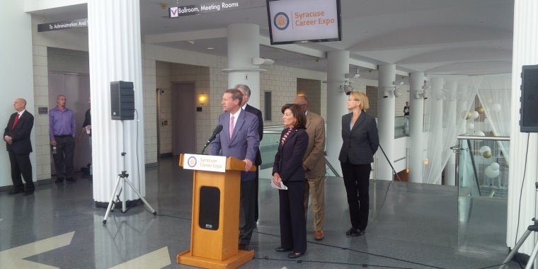 Sen. Valesky joined Lt. Gov. Kathy Hochul, County Executive Joanie Mahoney, Assemblyman Al Stirpe, and Syracuse Common Council President Van Robinson at the kickoff of the NYS Department of Labor's Syracuse Career Expo on November 5, 2015. There were more than 200 employers ready to hire job seekers at the Oncenter in Syracuse.
