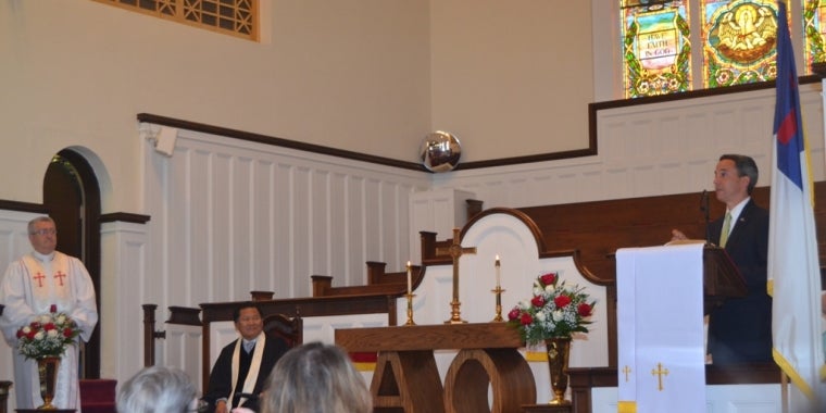 Senator Martins is pictured as he speaks to members of the United Methodist Church of Floral Park congregation.