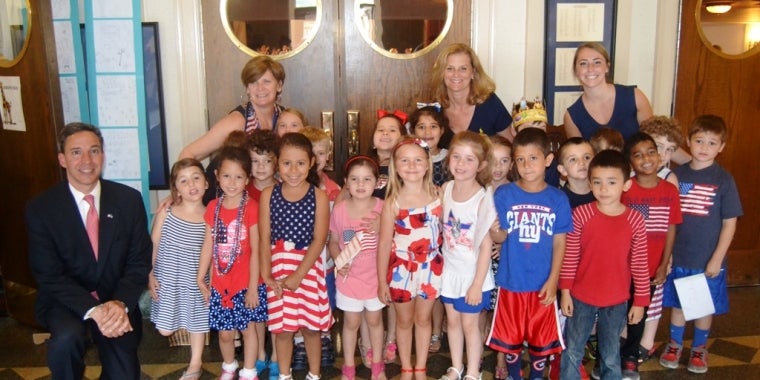 Senator Jack M. Martins (R-7th Senate District) recently joined with students and staff at Floral Park-Bellerose School in celebrating Flag Day at the school’s annual Flag Day Ceremony.