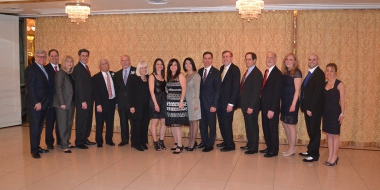 Senator Martins (seventh right) is pictured with honorees Peter Dejana (sixth left), Susan Goldman (eighth left) and Lisa Grossman (center) at the Residents for a More Beautiful Port Washington gala. They are joined by (l-r) Port Washington North Mayor Bob Weitzner, Town of North Hempstead Receiver of Taxes Charles Berman, Assemblywoman Michelle Schimel, Town of North Hempstead Town Clerk Wayne Wink, Jim Avena of the Peter & Jeri Dejana Family Foundation, Town of North Hempstead Supervisor Judi Bosworth, Town of North Hempstead Councilwoman Dina De Giorgio, Residents for a More Beautiful Port Washington Chairman Curt Trinko, Residents for a More Beautiful Port Washington Co-Presidents Rick Krainin and Dan Donatelli, Nassau County Legislator Delia DeRiggi-Whitton, Nassau County Executive Ed Mangano’s representative Eric Zausner, and Residents for a More Beautiful Port Washington Executive Director Mindy Germain.
