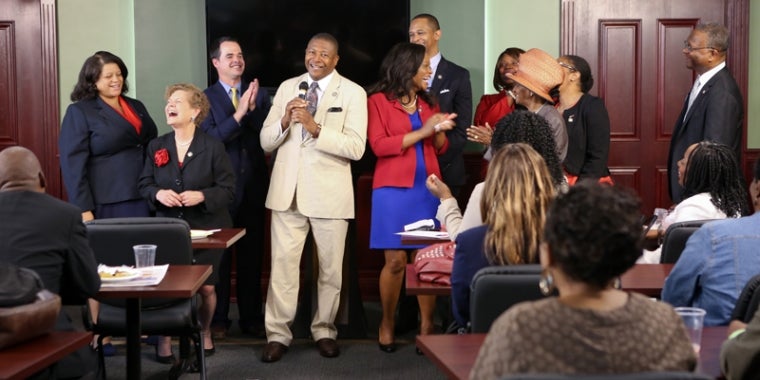 (Albany, NY - May 11, 2015) - State Senator James Sanders Jr. (D-Rochdale) celebrated Haitian Unity Day with his colleagues in government - Assemblywoman Michaelle Solages, Assemblywoman Ellen Jaffe, Senator David Carlucci, Assemblywoman Rodneyse Bichotte and Assemblywoman Kimberly Jean-Pierre.