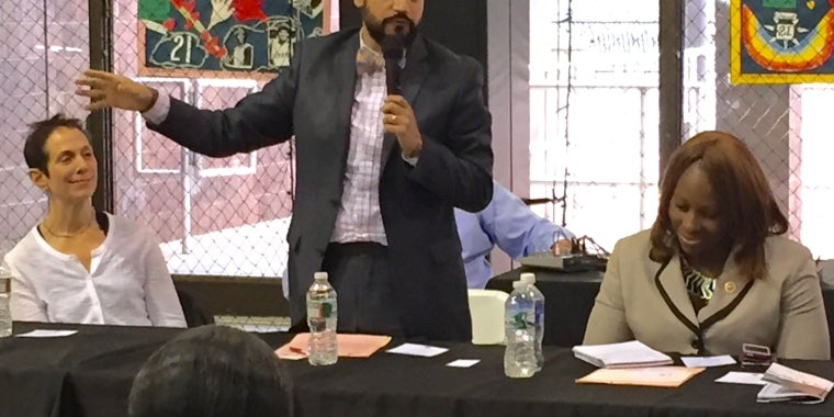 (Bronx, NY)- Senator Serrano, along with Assemblywoman Latoya Joyner, co-sponsored Council Member Vanessa L. Gibson's Community Meeting for River Park Towers residents. The town hall meeting was held at Roberto Clemente State Park in the Highbridge section of The Bronx and gave residents and officials an opportunity to discuss current conditions and areas in need of improvement. The Senator highlighted the need to preserve and protect affordable housing in all areas of our community.