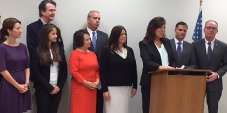 HYDE PARK, NY—Senator Sue Serino (R, C, I—Hyde Park), Dutchess County Executive Marcus Molinaro, local officials, members of law enforcement, Family Services, Inc. and victims’ advocates came together in front of the Hyde Park Police Department today to announce the restoration of critical funding to help stop the cycle of domestic violence and prevent local incidences of abuse.