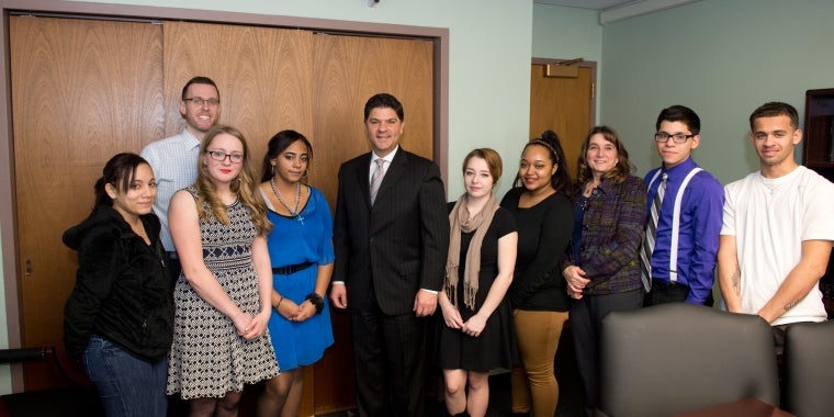 February 2, 2016 - Senator George Amedore met with students and advisors from Amsterdam High School. The students discussed the Liberty Partnership Program, and what a positive impact it has had on their lives.