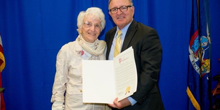 Senator John A. DeFrancisco is pictured with Kayla McKeon, the 2016 Champion of Change Self-Advocate of the Year by the National Down Syndrome Society.  Kayla officially received the natinoal award in Washington, D.C. on April 11, 2016.  The New York State Senate presented Kayla with a Legislative Resolution for all of her accomplishments on the Senate Floor, May 11, 2016.