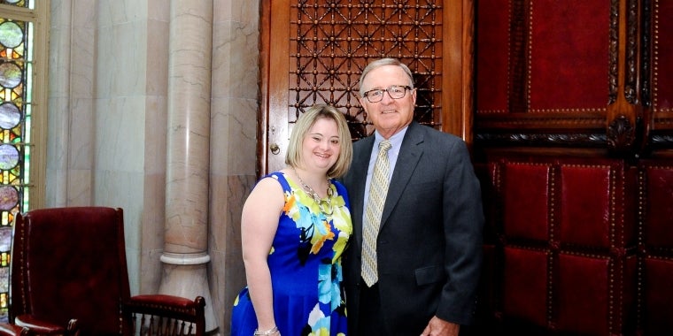 Senator John A. DeFrancisco is pictured with Kayla McKeon, the 2016 Champion of Change Self-Advocate of the Year by the National Down Syndrome Society. Kayla officially received the natinoal award in Washington, D.C. on April 11, 2016. The New York State Senate presented Kayla with a Legislative Resolution for all of her accomplishments on the Senate Floor, May 11, 2016.