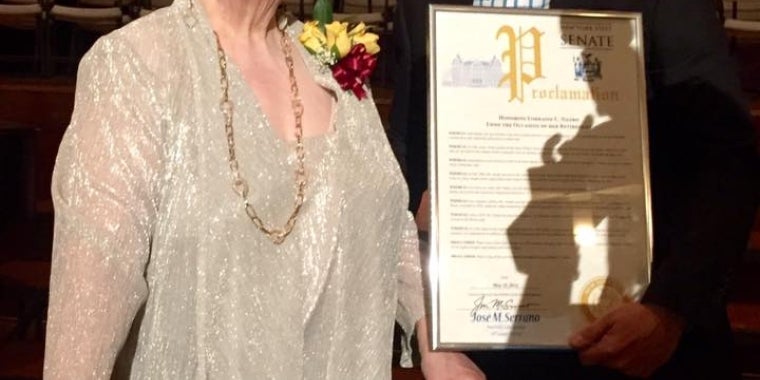 Senator Serrano presented Mrs. Lorraine Nanko with a proclamation honoring her for her extraord inar y service to the community as a teacher at Cardinal Hayes High School for the last 46 years. Mrs. Nanko arrived at the renowned Cardinal Hayes Memorial H.S. for Boys in the fall of 1969, and taught music appreciation, as well as the Cardinal Singers, the school's chorale group. She was the Musical Director for the school's annual theatrical productions for 36 years.