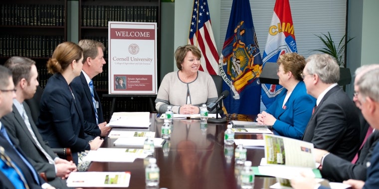 Hosted by Senate Agriculture Committee Chair Senator Patty Ritchie, the meeting featured Dr. Kathryn Boor, Dean of the School of Agriculture and Life Sciences, who touched on accomplishments of the past year involving Cornell-run programs like Harvest NY and PRO-DAIRY. Senator Ritchie was key to securing additional state budget funding for the programs, including restoring budget cuts and expanding proven programs that help farmers grow.