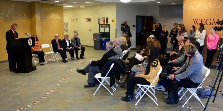 Senator Rich Funke today announced a $50,000 state grant to help support St. John Fisher College’s Academy for Leadership in Long Term Care, a division of the Wegmans School of Nursing. The Academy is our region’s first and only provider of workforce development programming designed to address the skilled training and continued learning needs of workers in the long-term care fields. Funke was joined at the announcement by Dr. Gerard Rooney, president of St. John Fisher College; Dr. Dianne Cooney Miner, dean of the Wegmans School of Nursing; and Dr. Marilyn Dollinger, associate dean of the Wegmans School of Nursing.