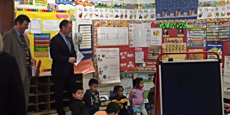PEEKSKILL, NY - Peekskill pride was in evidence when Senator Terrence Murphy toured the Peekskill City School District. Senator Murphy met with Dr, David Fine, Superintendent of Schools, and toured Woodside Elementary, Peekskill High School and the Summit Academy at Uriah Hill.