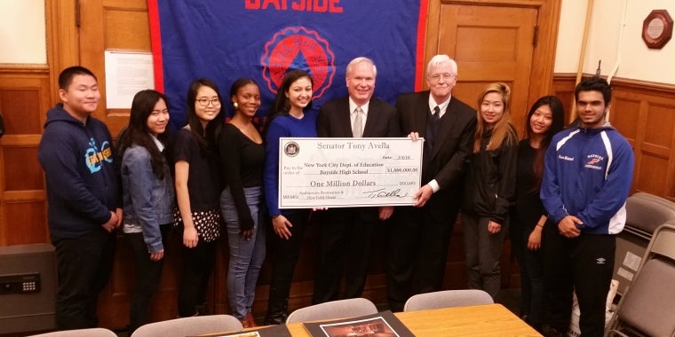 Senator Avella Presents One Million Dollar Check to Bayside High School