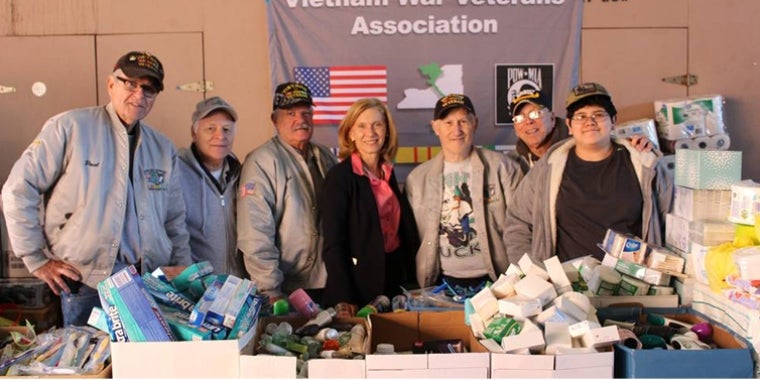 Senator Elaine Phillips recently participated in the Nassau County “Veterans Stand Down” event and handed out cold weather items including, jackets, socks, shoes, coats and food donated by residents of the 7th Senate District for homeless veterans and veterans in need.