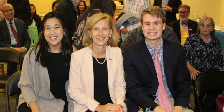 Senator Elaine Phillips recently hosted a celebration ceremony for Manhasset High School seniors Rachel Chang and Ryan Thorpe, who won the Stockholm Junior Water Prize, the most prestigious youth award for a water-related research project.