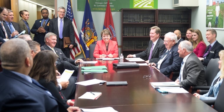 (Attn. photo editors: Pictured from left to right in the above photo are Senator Leroy Comrie, Senator Patrick Gallivan, Senator Michael Razenhofer, Senator Rich Funke, Senator Patty Ritchie, Todd Kuznierz of Senator Ritchie’s staff, Senator John Brooks, David Fisher and Sheila O’Sullivan of Senator Ritchie’s staff)