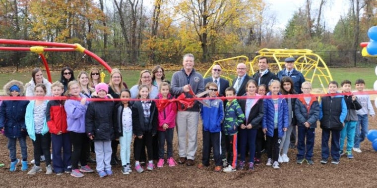 Senator Murphy was on hand on November 9th for the ribbon cutting ceremony that unveiled the new state-of-the-art equipment. What made the day so special for the students was that each grade had its own ribbon ceremony prior to using the new equipment the first time. The seven new pieces of equipment include a zip line and jungle gym as well as individual pieces.