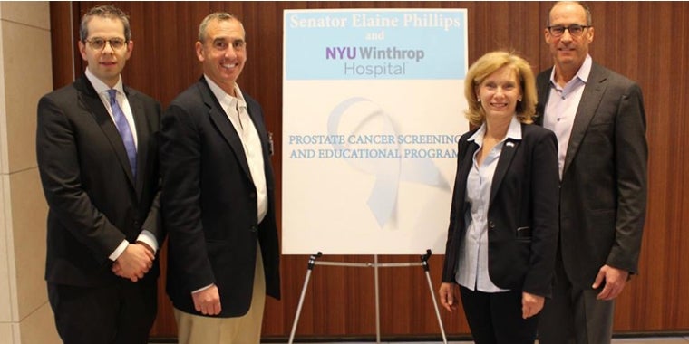 Senator Elaine Phillips, in partnership with NYU Winthrop Hospital, recently hosted a free Prostate Cancer Screening and Educational Program for more than 65 men at NYU Winthrop’s Research and Academic Center.