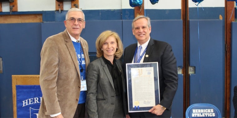 Senator Elaine Phillips recently attended Herricks High School’s National Blue Ribbon School celebration. Last fall, the United States Department of Education named Herricks High School a National Blue Ribbon School for 2017.