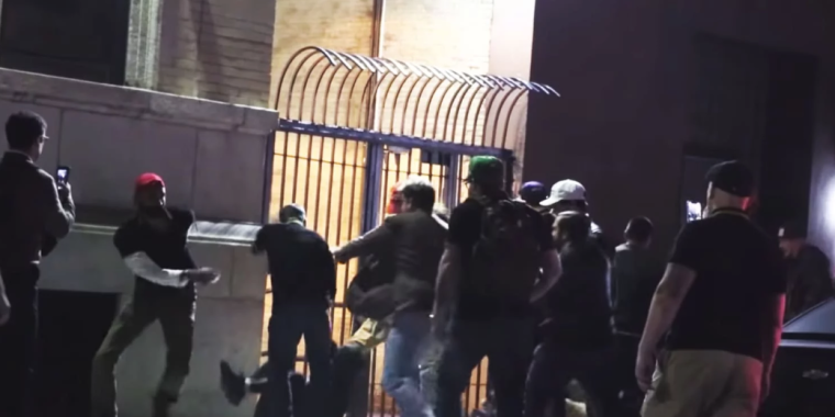 Members of the Proud Boys were caught on video assaulting anti-fascist protesters after the event. At one point a dozen of them were kicking a man and shouting anti-gay slurs at him while he was curled up in a fetal position on the floor. The leader of the Proud Boys, who was reportedly present during the incident, seemed to justify the violence by stating that anti-fascists had created a “climate of fear” by vandalizing a GOP clubhouse.