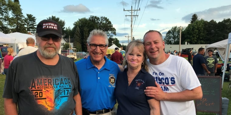 Senator Jim Tedisco (R,C,I,REF-Glenville) visited the annual Bannertown Fair in Mayfield this weekend and spent time joining Village of Mayfield Mayor Jamie Ward talking with and listening to residents. Among the people Tedisco met with, were Roger and Linda Hayward, Grand Marshalls of the Bannertown Parade, who were chosen for their amazing hard work they provide the community with the Mayfield Fire Department (Picture IMG 2821). Also pictured is Tedisco with Shanley and Marissa De-Ridder (IMG 2815) and the Senator enjoying a chili dog made by the Mayfield Fire Department.