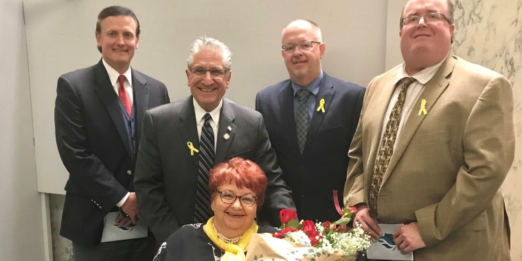 Senator Jim Tedisco (R,C,I,REF-Glenville) and his colleagues in the New York State Senate in Albany tonight honored Clifton Park resident Carol Pingelski Hotaling, affectionately known as the “Yellow Ribbon Lady,” as a 2019 New York State Senate Woman of Distinction to represent the 49thSenate District.