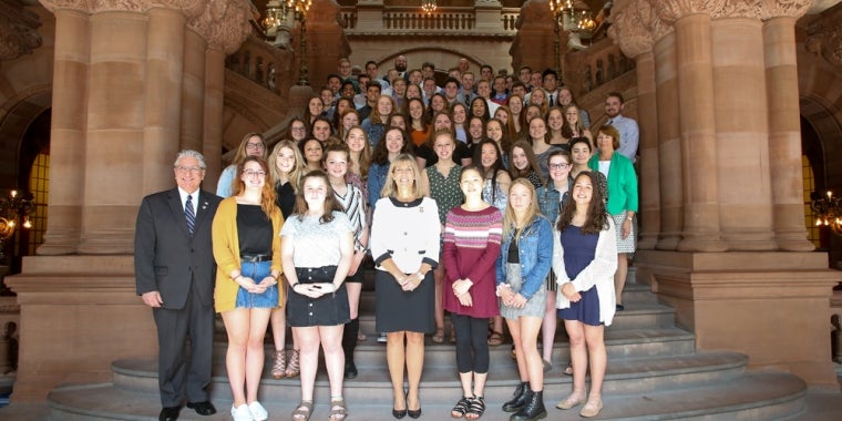 Senator Jim Tedisco (R,C,I,REF-Glenville) and Senator Daphne Jordan (R,C,I-Halfmoon) today passed resolutions in honor of, and welcomed to the Senate, the New York State 2019 NYSPHSAA Champion Shenendehowa High School Boys & Girls Swimming and Diving Team and the state Champion Niskayuna High School Boys Swimming and Diving Team.