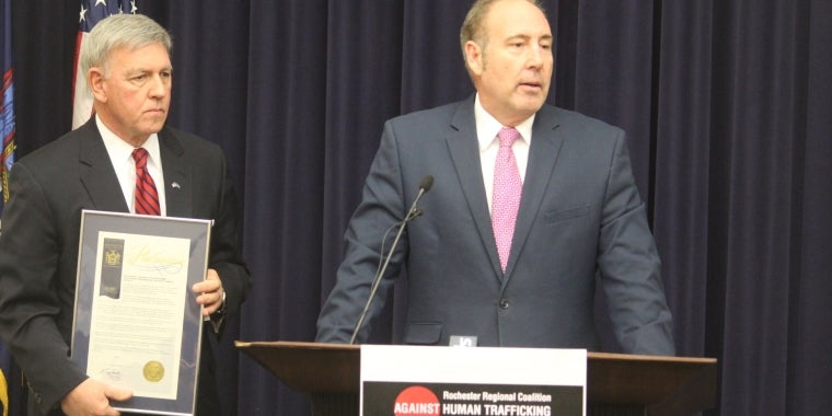 Honored to join the Rochester Coalition Against Human Trafficking in recognition of the month of January as National Human Trafficking Prevention Awareness Month. I have been proud to sponsor and support a number of bills in the state Senate to help protect victims of human trafficking and further punish those who commit these heinous crimes. Thank you to the Rochester Coalition Against Human Trafficking and their partners in advocacy and law enforcement for their work to raise awareness to these unthinkable actions.