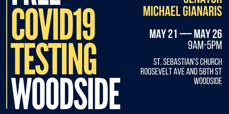 WOODSIDE – Senate Deputy Leader Michael Gianaris and Woodside on the Move are teaming up to encourage residents of western Queens to be tested for covid-19. The new community testing site is located at St. Sebastian’s in Woodside at Roosevelt Avenue and 58th Street. Testing will be available for qualified residents by appointment and will take place over six days, from May 21 through May 26, from 9 am to 5 pm daily. The site is being organized in partnership with Somos El Futuro, a social welfare organization that serves Hispanic communities.