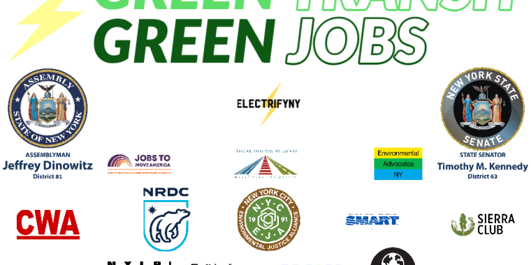 ALBANY, NY – One year after New York State enacted monumental climate change legislation, a pair of state legislators are pushing their proposal to reduce carbon emissions in the transportation sector and promote the creation of new, good, climate-friendly jobs. The proposal, known as “Green Transit, Green Jobs” includes two bills. One bill requires all new transit bus purchases starting in 2029 to be of zero-emission buses (ZEB) and the second would create contracting incentives for public transit agencies to procure these buses from manufacturers that utilize labor from high-need communities within New York State and create good green jobs. The plan has widespread support among environmental advocates, transit advocates, and labor unions throughout the state.