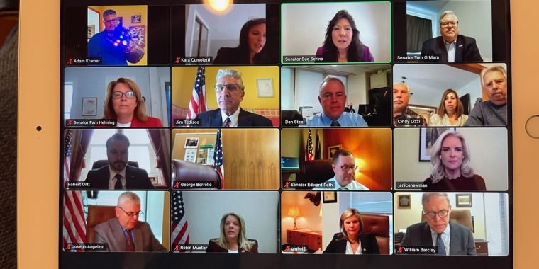 On what would have been New York State Health Commissioner Howard Zucker’s appearance before lawmakers to testify at the now delayed Joint Health Budget Hearing, Senator Jim Tedisco (R,C-Glenville) today joined Senator Sue Serino, Senate Minority Leader Rob Ortt, Senator Tom O’Mara and other legislative colleagues along with Janice Dean, Fox News Senior Meteorologist, who lost her in-laws who were residents of state-regulated elder care facilities to the coronavirus, for a virtual press conference to call for expedited action in light of the Attorney General’s bombshell new report on the Cuomo Administration’s cover-up of the deaths of thousands of nursing home residents from COVID-19 in nursing homes.